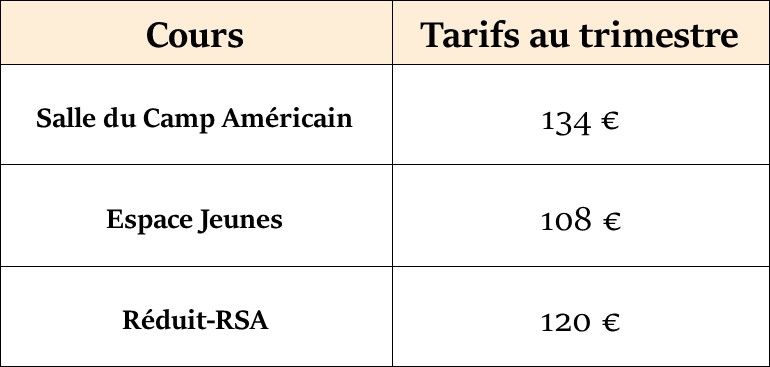 Forfait trimestriel- Payable en 1-2 ou 3 chèques à l'ordre de Tao Académie en début de trimestre (octobre-janvier-avril)
